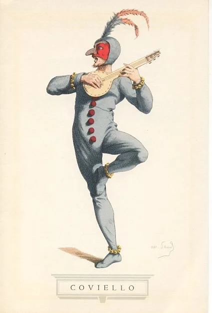 The next prominent period that widely used masks spans the Italian Renaissance in Italian comedy, commedia dell’arte. The commedia dell’arte form was often a professional improv travelling troupe. “Arte” signifies professional, as opposed to amateur, actors. All performers wore masks—except the lovers, whose faces were bare for all to see. Three main actors frequently took the stage: Pantalone, Dottore, and Capitano, who wore distinct masks. The servants, meanwhile, were not portrayed in the prettiest light, literally. A distinguishing feature such as a humped back or an abnormally large nose could take prominence. The point is, with masks, audiences could then identify archetypes in various troupes.